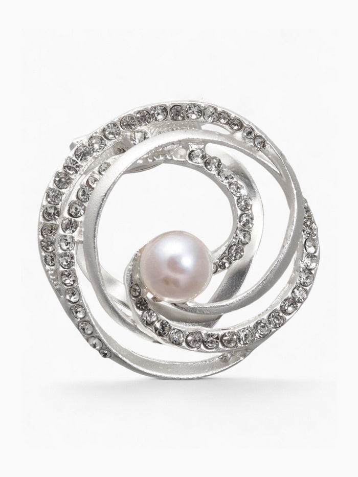 Зажим для платка «Жемчужный завиток», цвет белый в матовом серебре