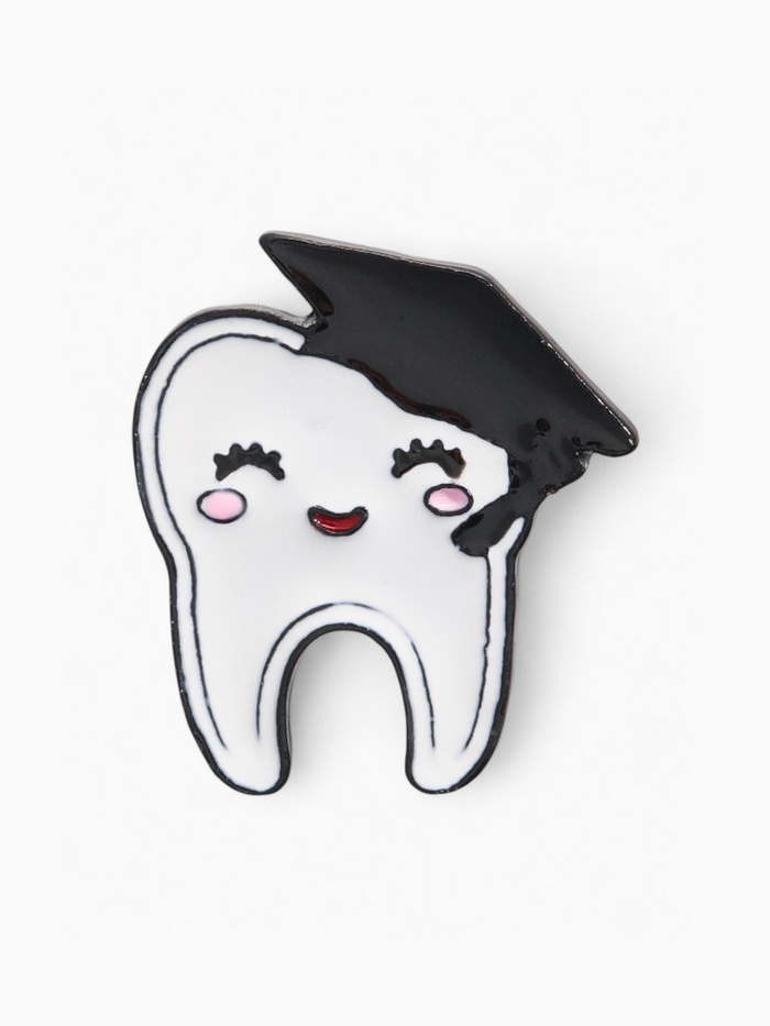 Значок «Зуб в академической шапочке», чёрно-белый в чёрном металле