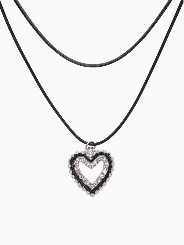 Чокер «Двойной» с нитью, сердечко, цвет бело-чёрный в серебре, L=32 см