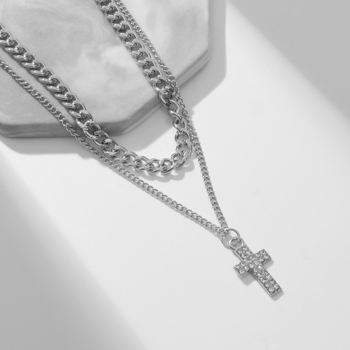 Кулон «Цепь» крест плоский, цвет белый в серебре, 40 см