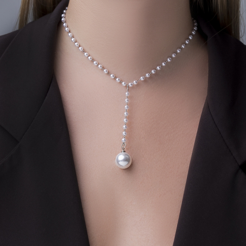 Центр композиции занимает плоское серебряное распятие, подчеркнутое крошечными стразами, придающими изделию искрящийся эффект и завершающими стильный ансамбль. Белоснежная основа цепочки образует базу, которая удерживает кристаллический элемент и создает иллюзию незримой связи между вами и высшей силой.
