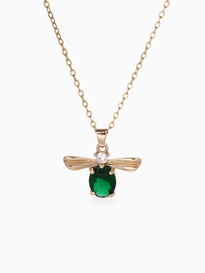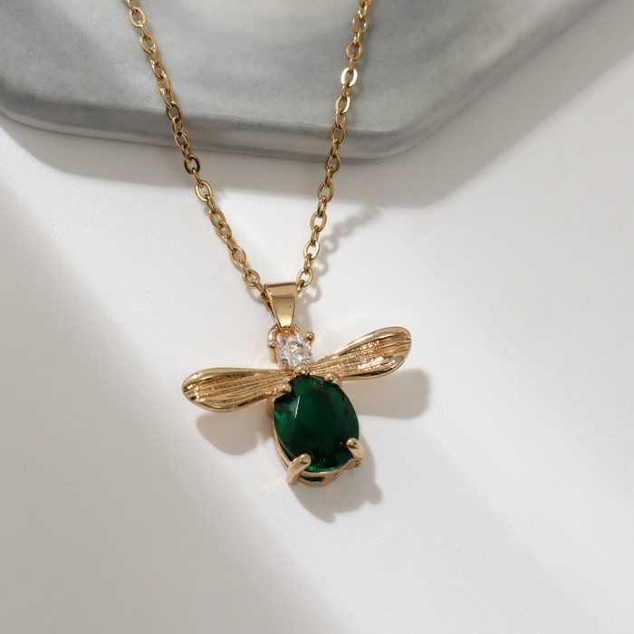 Кулон на цепочке «Жук», зеленая вставка, зелёный в золоте, 45 см
