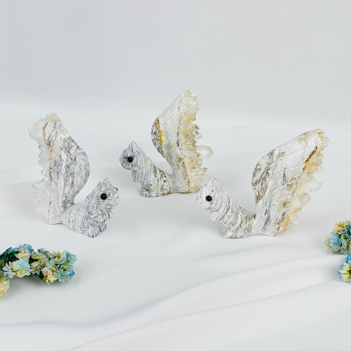 Радуга Самоцветов Белка из камня с друзами Горного Хрусталя