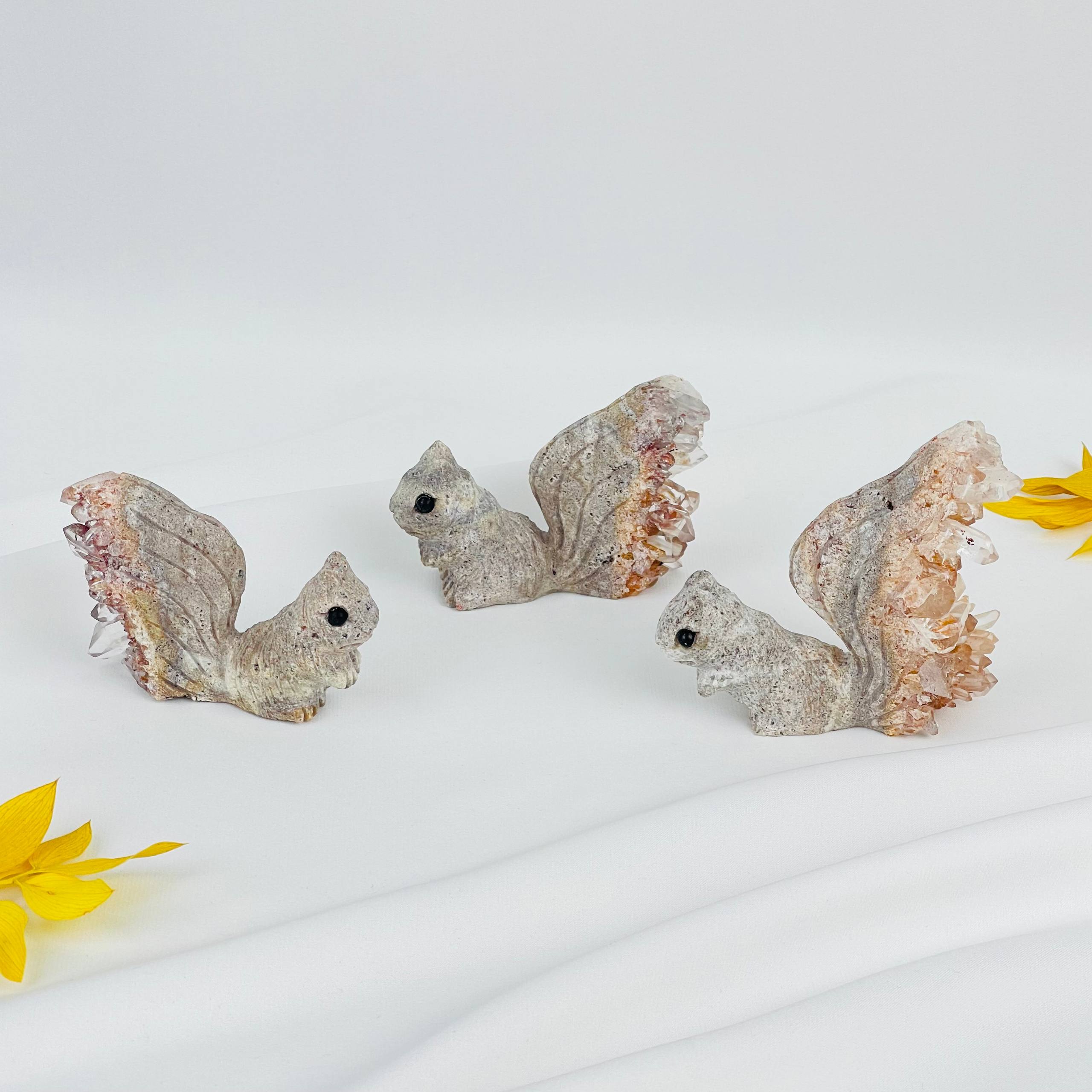 Радуга Самоцветов Белка из камня с друзами Горного Хрусталя