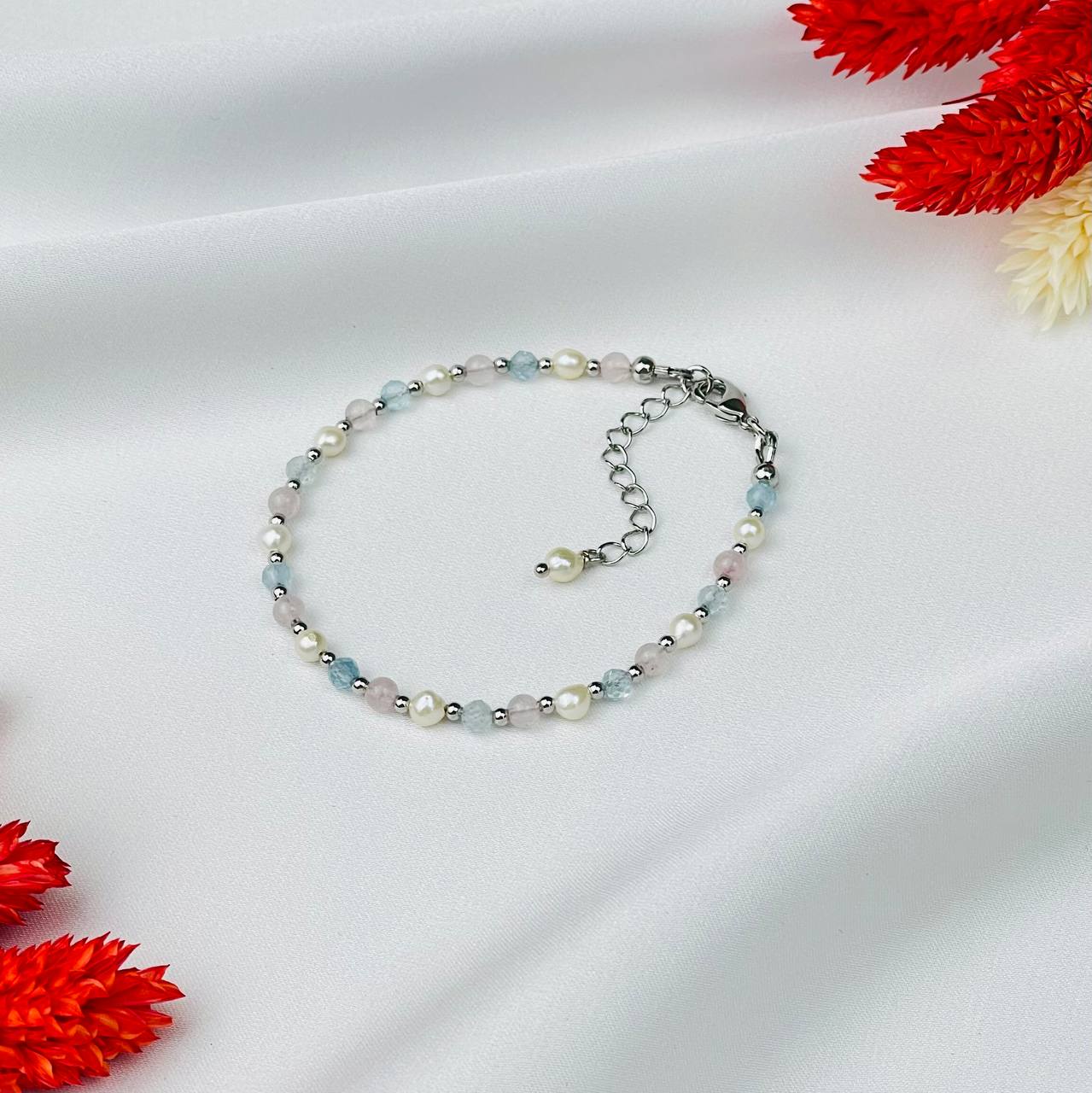 Радуга Самоцветов Браслет для Рыб из Аквамарина, Жемчуга и Розового кварца