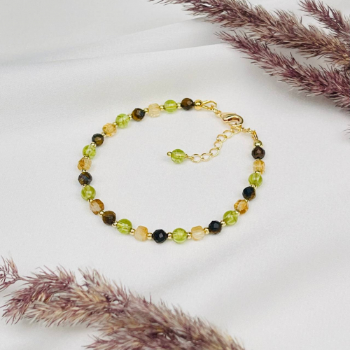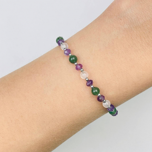 Радуга Самоцветов Браслет для "Тельца" из Аметиста, Лунного камня и зеленого Кварца