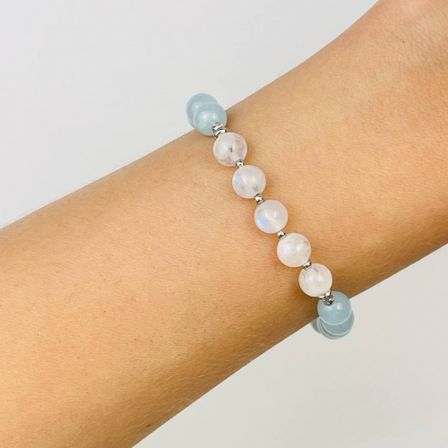 Радуга Самоцветов Браслет из Аквамарина и Лунного камня
