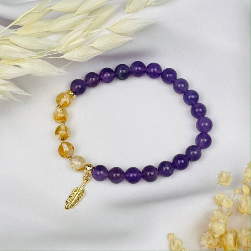 Радуга Самоцветов Браслет из Аметиста и Цитрина с подвеской "Перо"