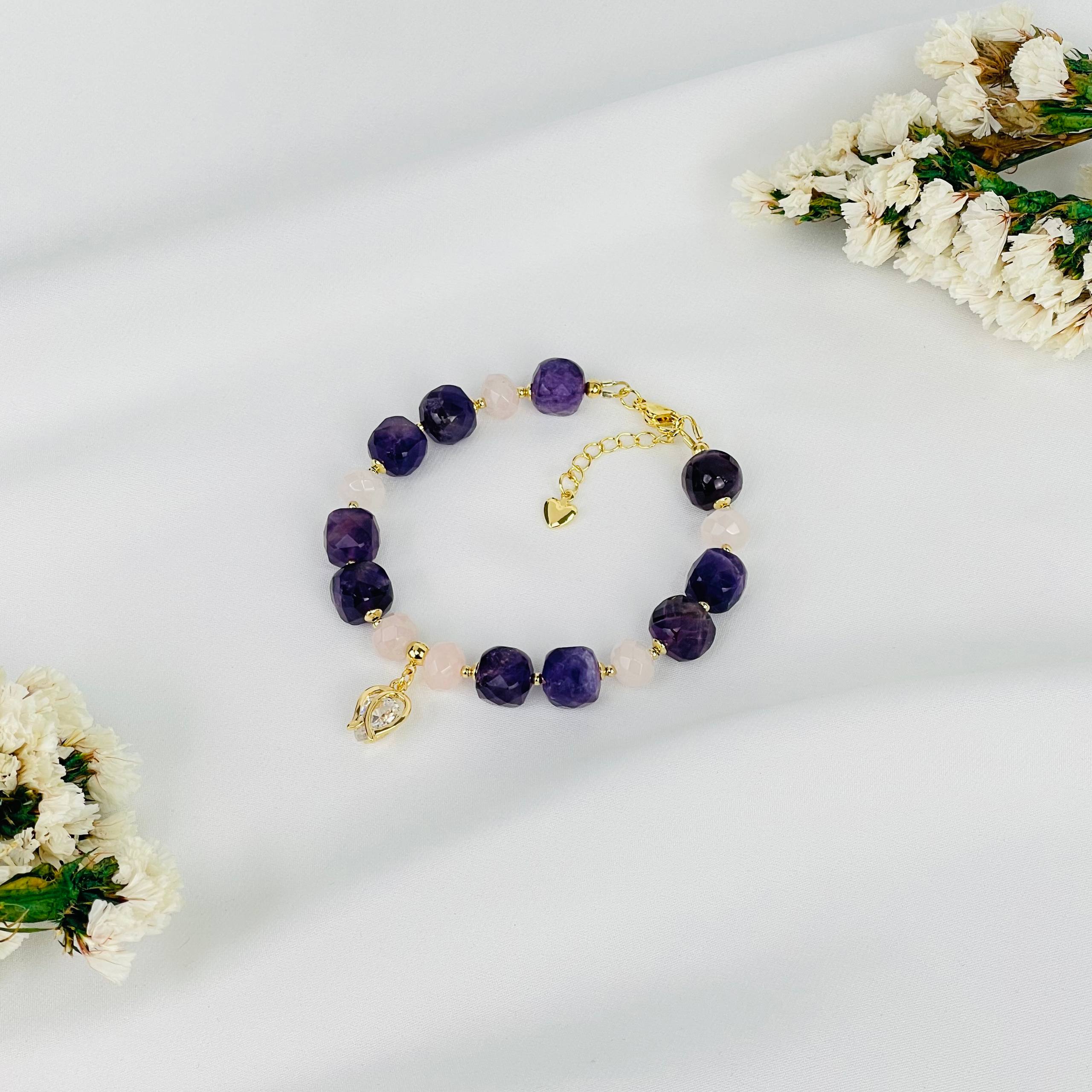 Радуга Самоцветов Браслет из Аметиста и Розового кварца с подвеской