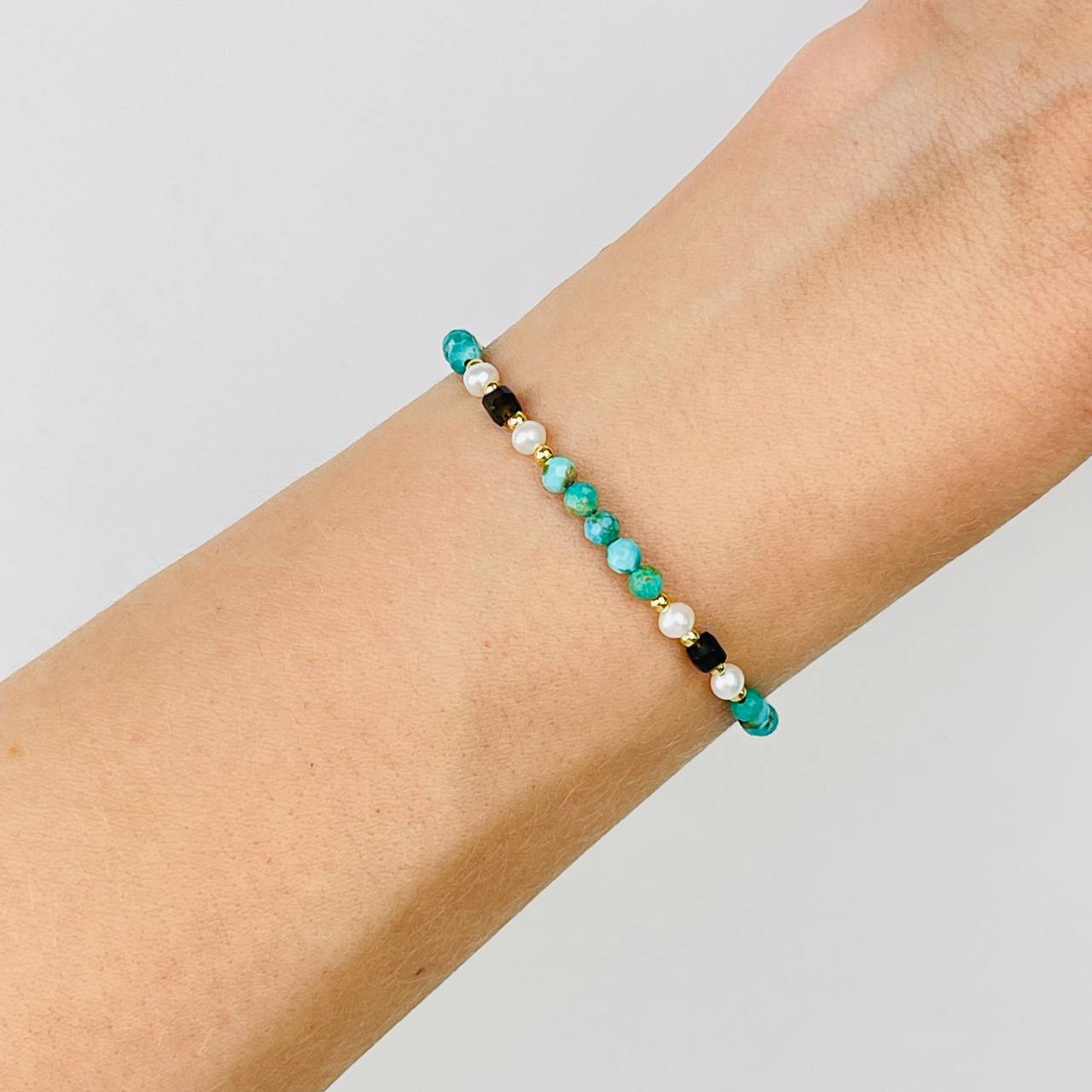 Радуга Самоцветов Браслет из Бирюзы, Жемчуга и Обсидиана