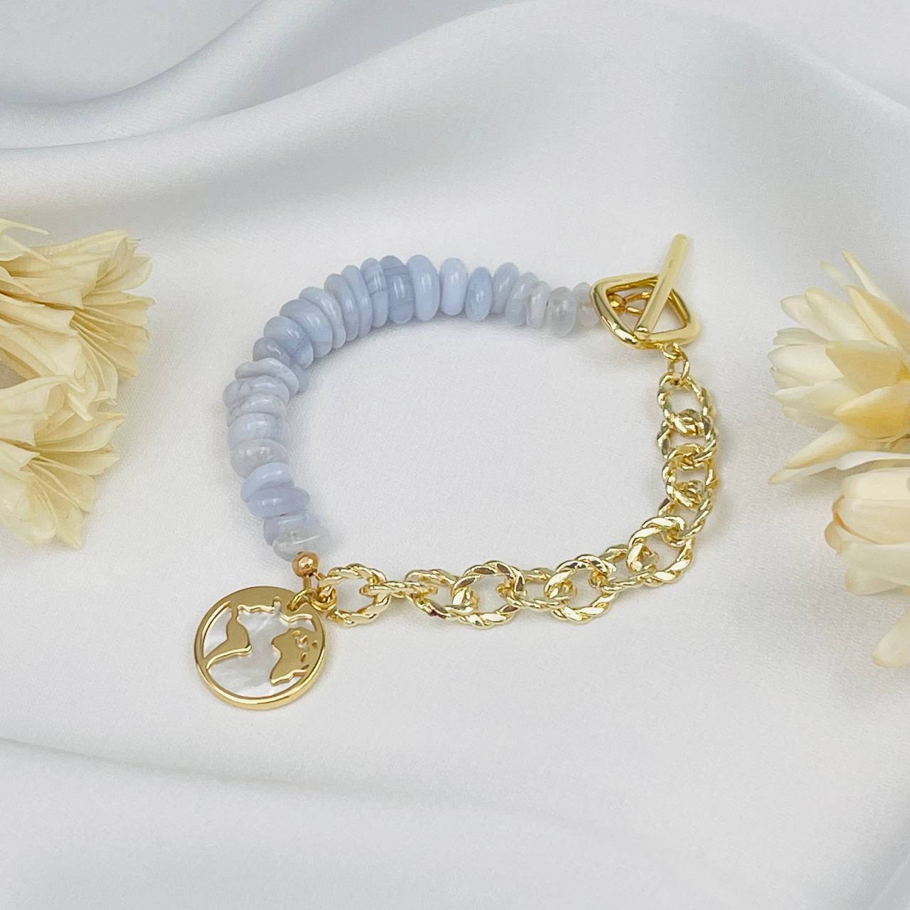 Радуга Самоцветов Браслет из Голубого агата с цепочкой и перламутровой подвеской