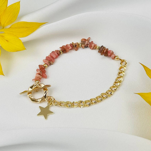 Радуга Самоцветов Браслет из Родохрозита с цепочкой