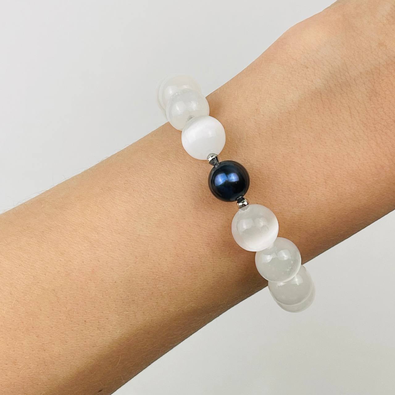 Радуга Самоцветов Браслет из Селенита и Жемчуга