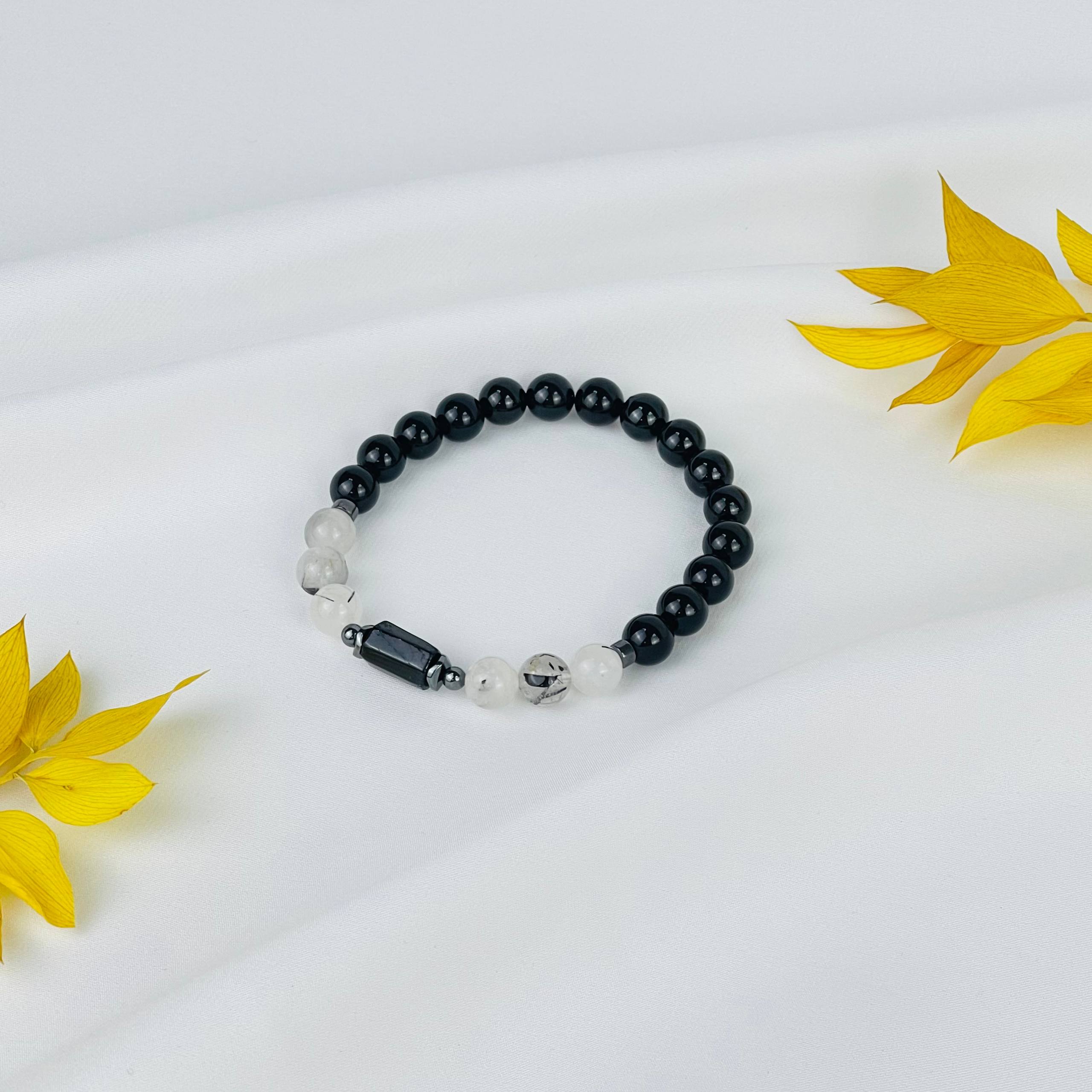 Радуга Самоцветов Браслет из Турмалина (Шерл) и Кварца с включениями
