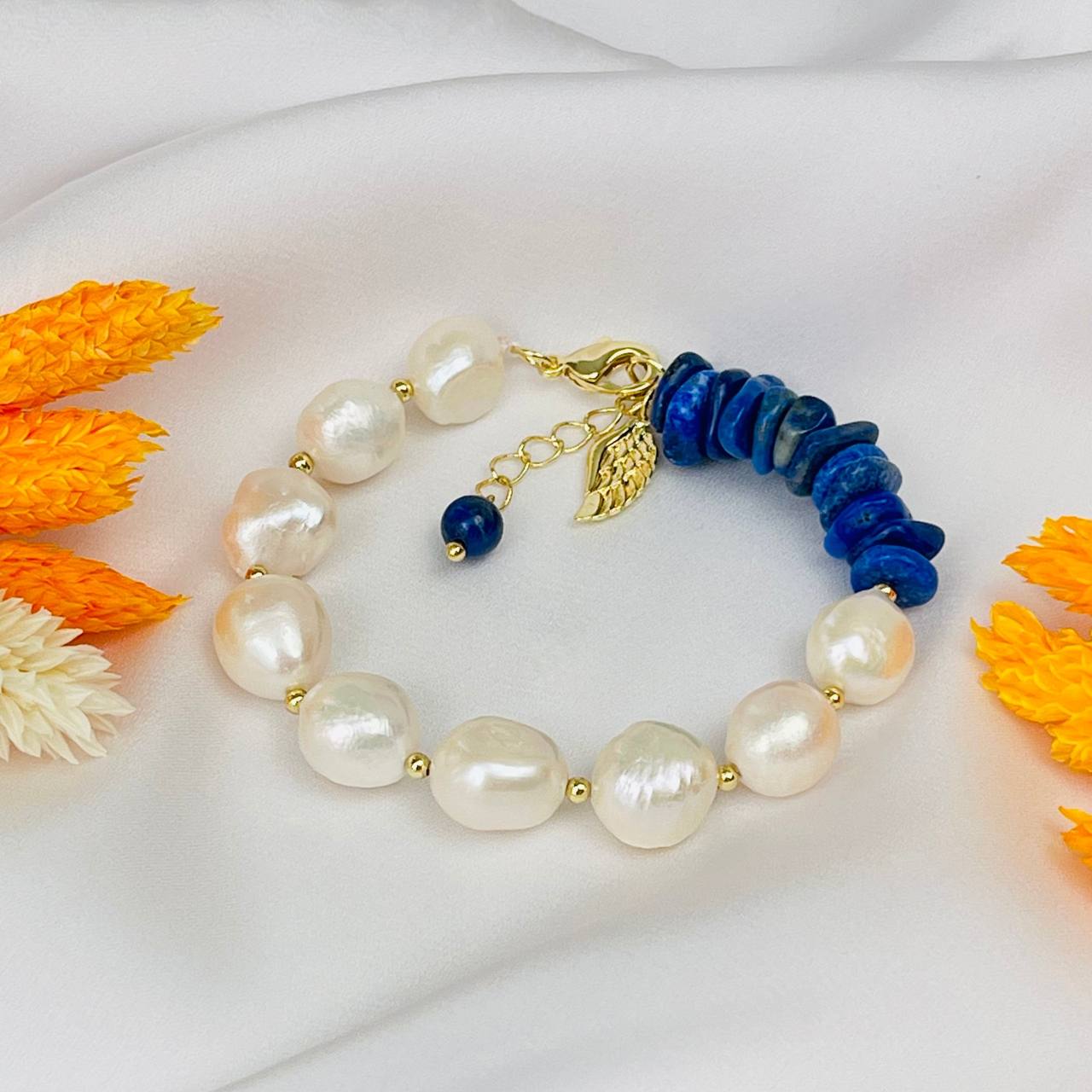 Радуга Самоцветов Браслет из Жемчуга и Лазурита