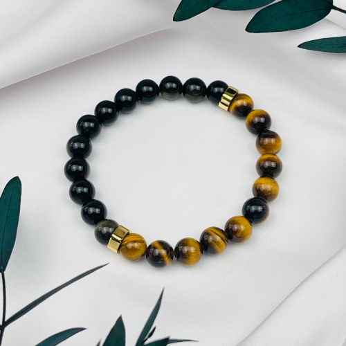Радуга Самоцветов Браслет мужской из Тигрового глаза и Обсидиана