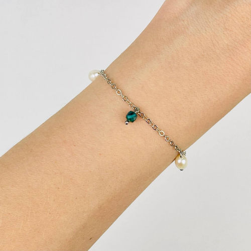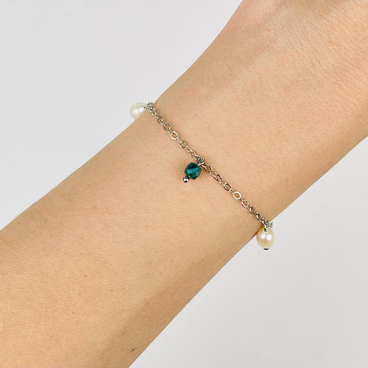 Радуга Самоцветов Браслет на цепочке из Малахита и Жемчуга