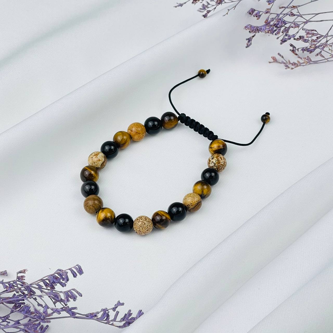 Радуга Самоцветов Браслет регулируемый "Стихия Земля" из Тигрового глаза, Яшмы и Обсидиана