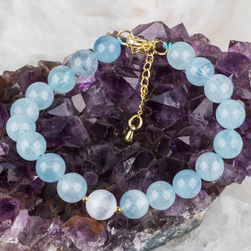 Радуга Самоцветов Браслет с Аквамарином и Селенитом