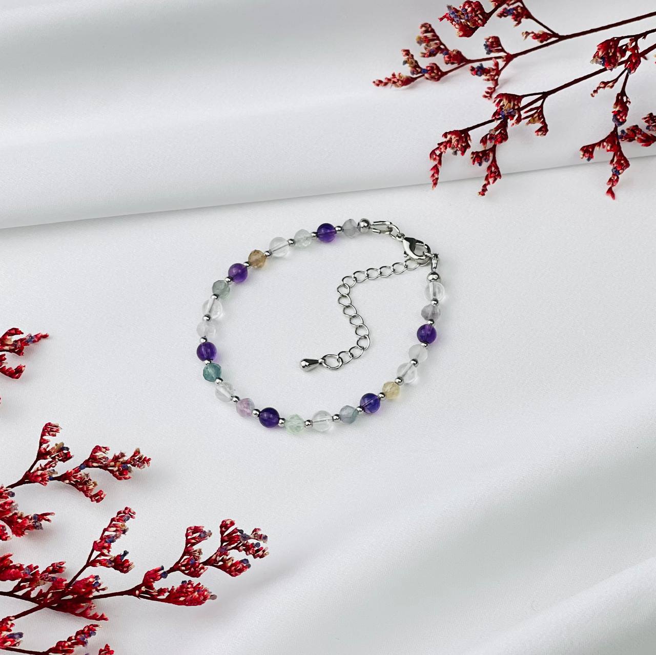 Радуга Самоцветов Браслет "Стихия Эфир" из Аметиста, Флюорита и Горного Хрусталя