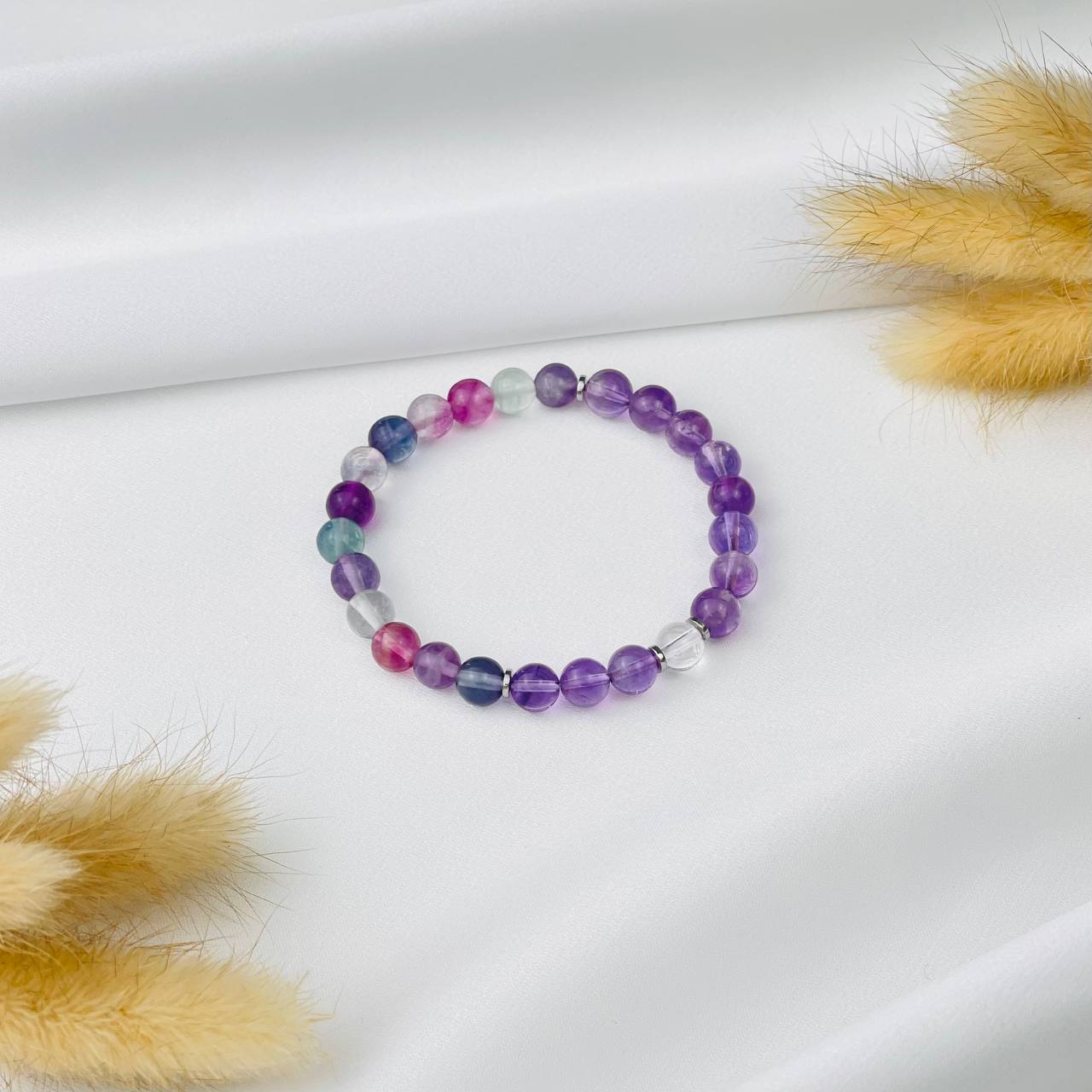 Радуга Самоцветов Браслет "Стихия Эфир" из Аметиста, Флюорита и Горного Хрусталя