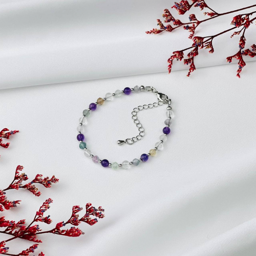 Радуга Самоцветов Браслет "Стихия Воздух" из Горного Хрусталя, Флюорита и Рутилового кварца
