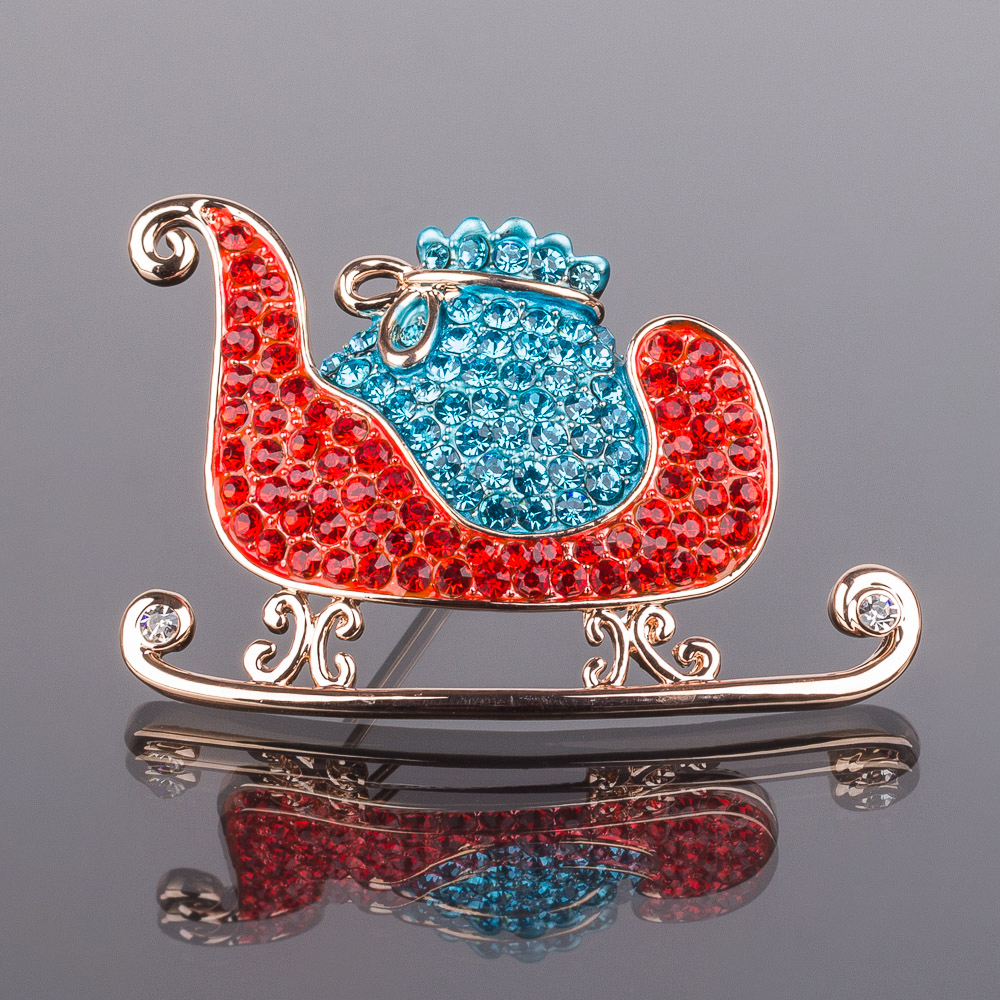 Радуга Самоцветов Брошь "Сани подарочные" Хрусталь