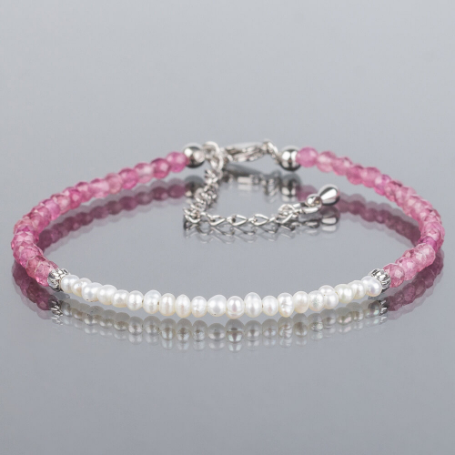 Радуга Самоцветов Брслет из Турмалина розового и Жемчуга