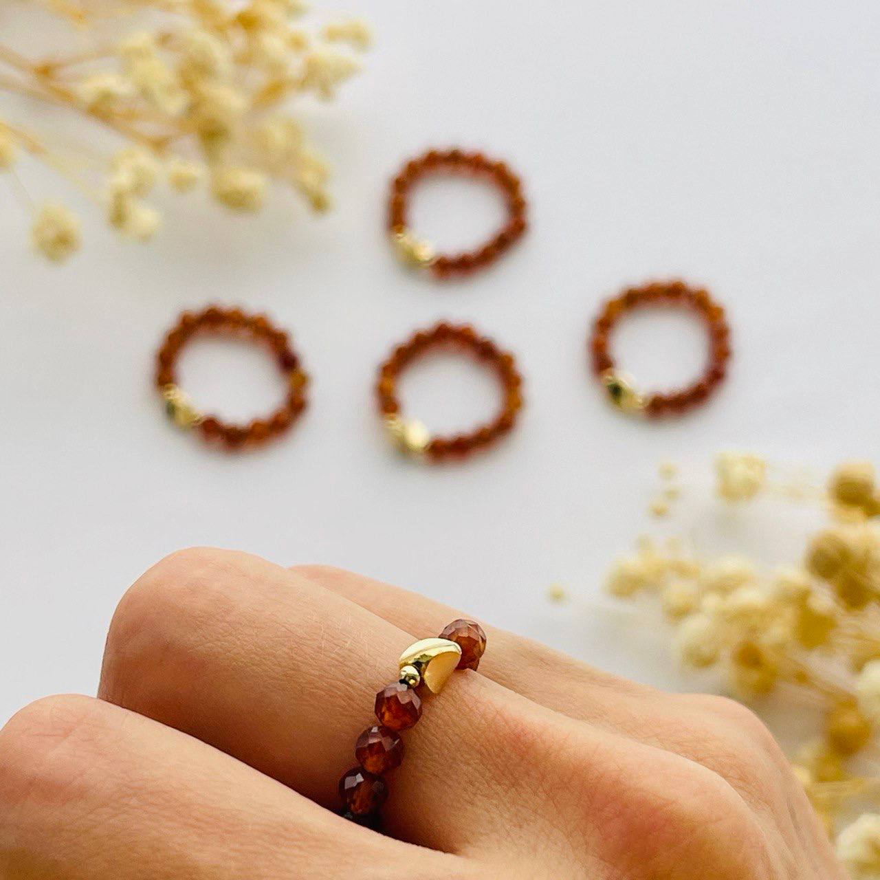 Радуга Самоцветов Кольцо на резинке из Граната "Спессартин"