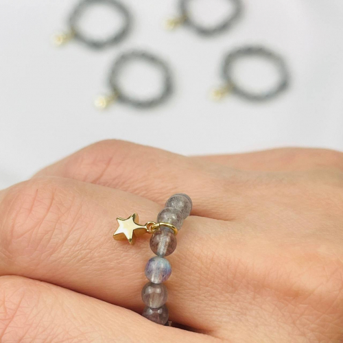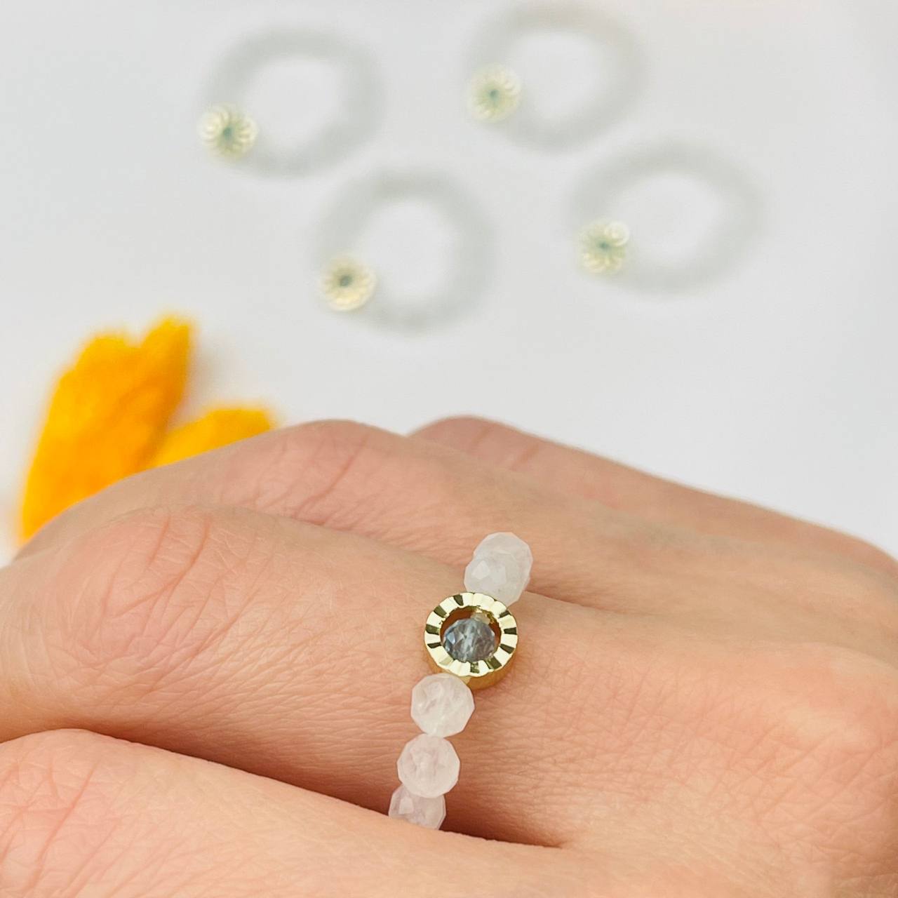 Радуга Самоцветов Кольцо на резинке из Лунного камня и Аквамарина