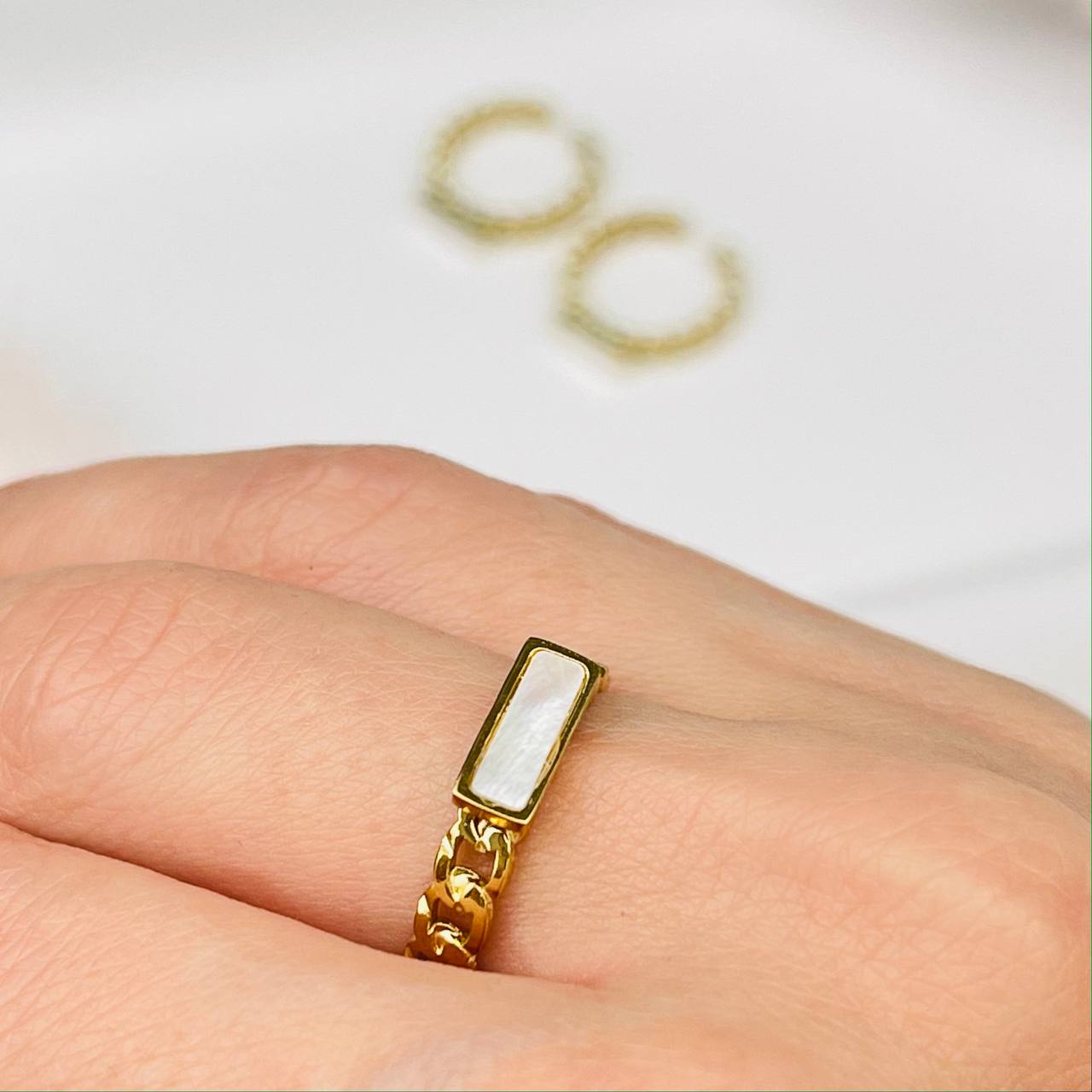 Радуга Самоцветов Кольцо регулируемое из хирургической стали с Перламутром