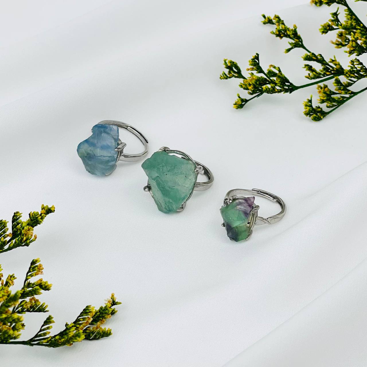 Радуга Самоцветов Кольцо регулируемое из необработанного Флюорита