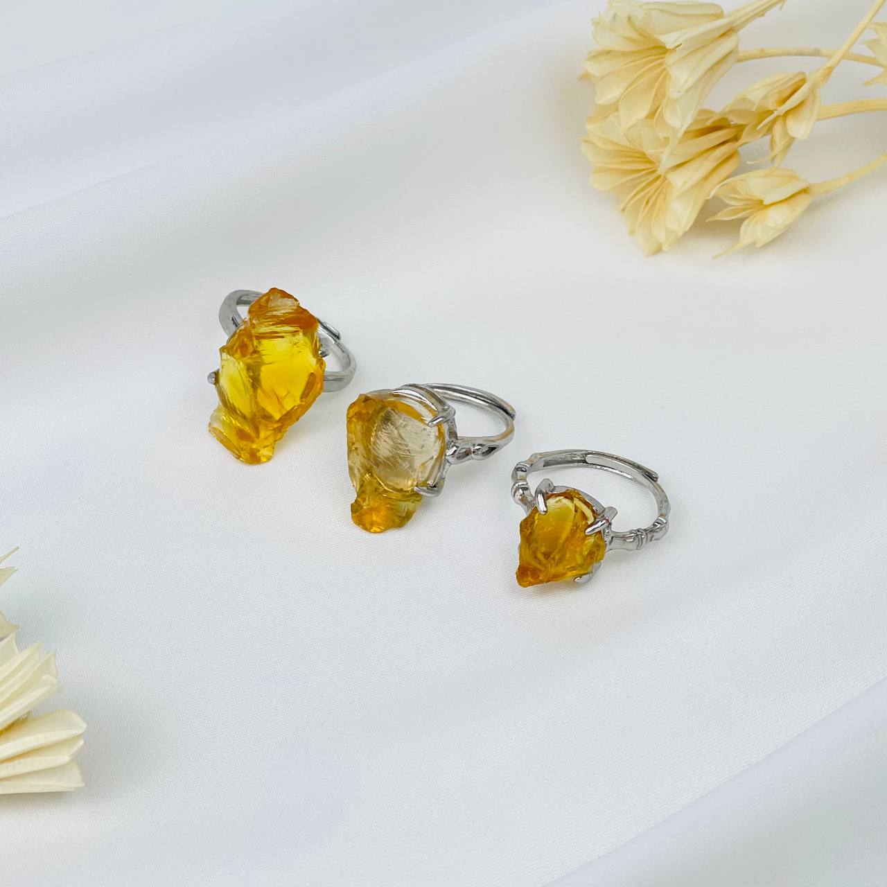Радуга Самоцветов Кольцо регулируемое из необработанного Янтаря