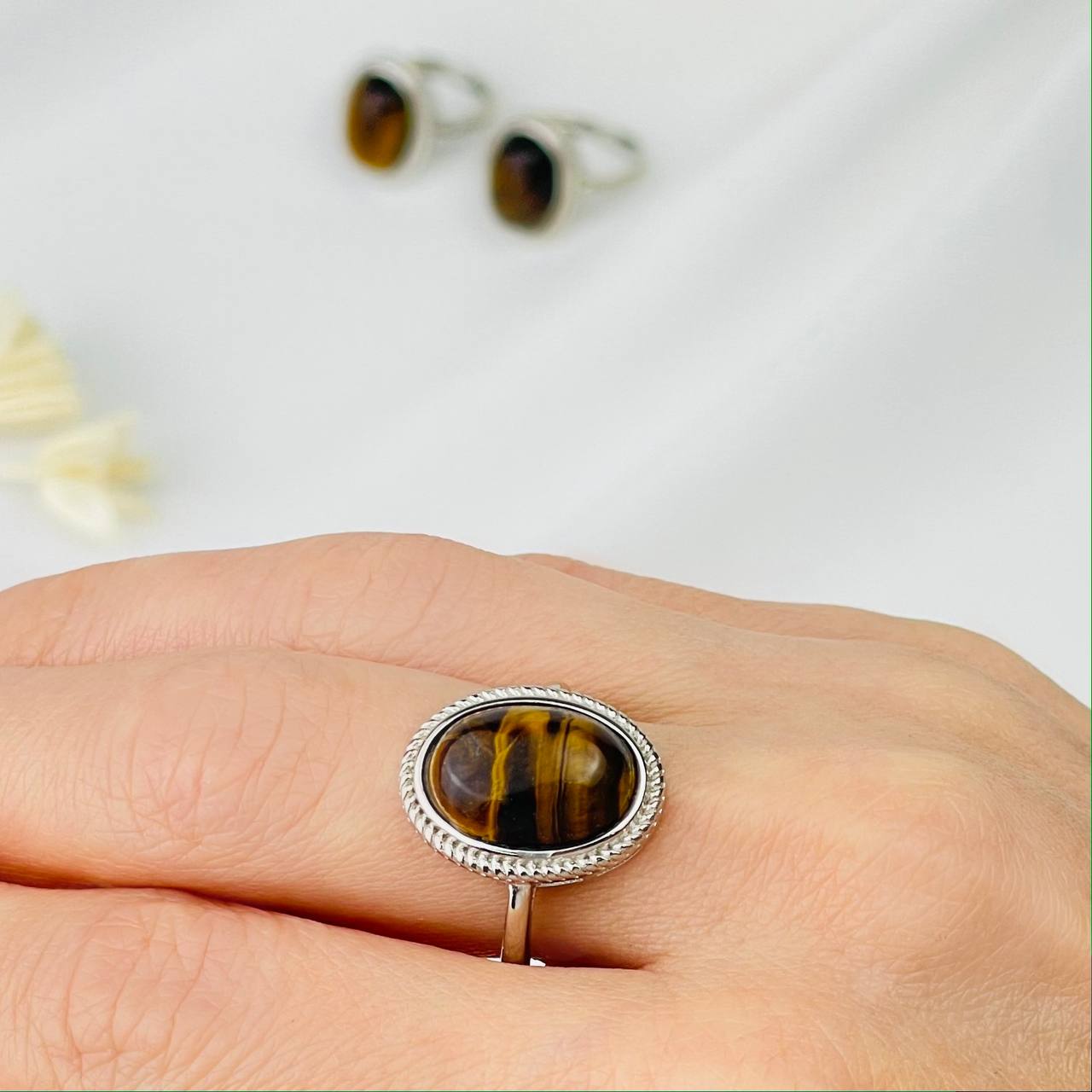 Радуга Самоцветов Кольцо регулируемое из Тигрового глаза