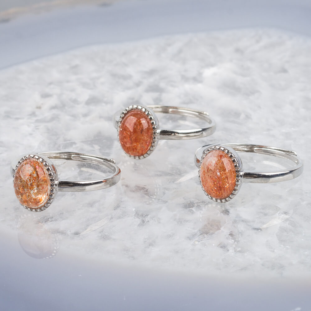 Радуга Самоцветов Кольцо регулируемое с Солнечным камнем