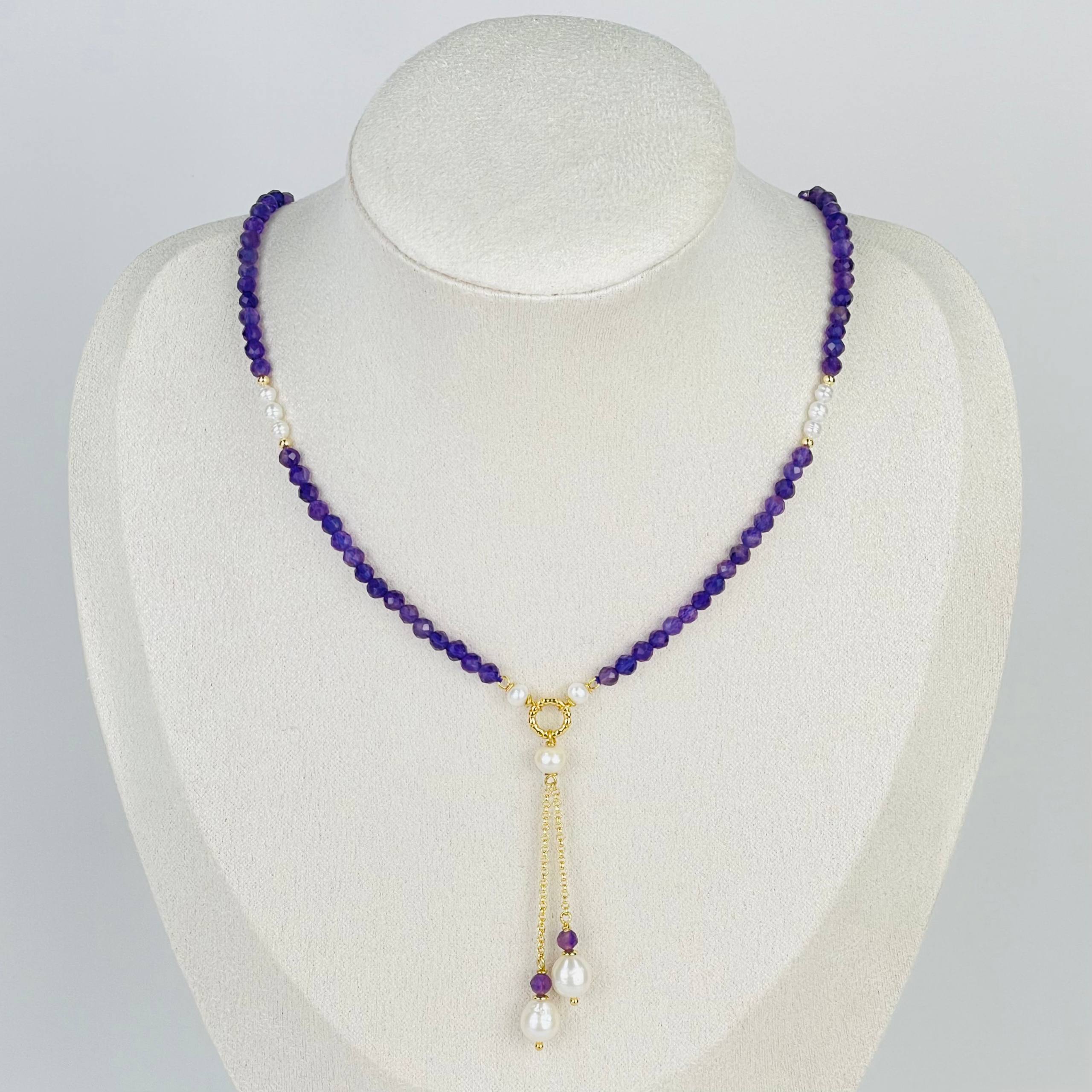 Радуга Самоцветов Колье из Аметиста и Жемчуга