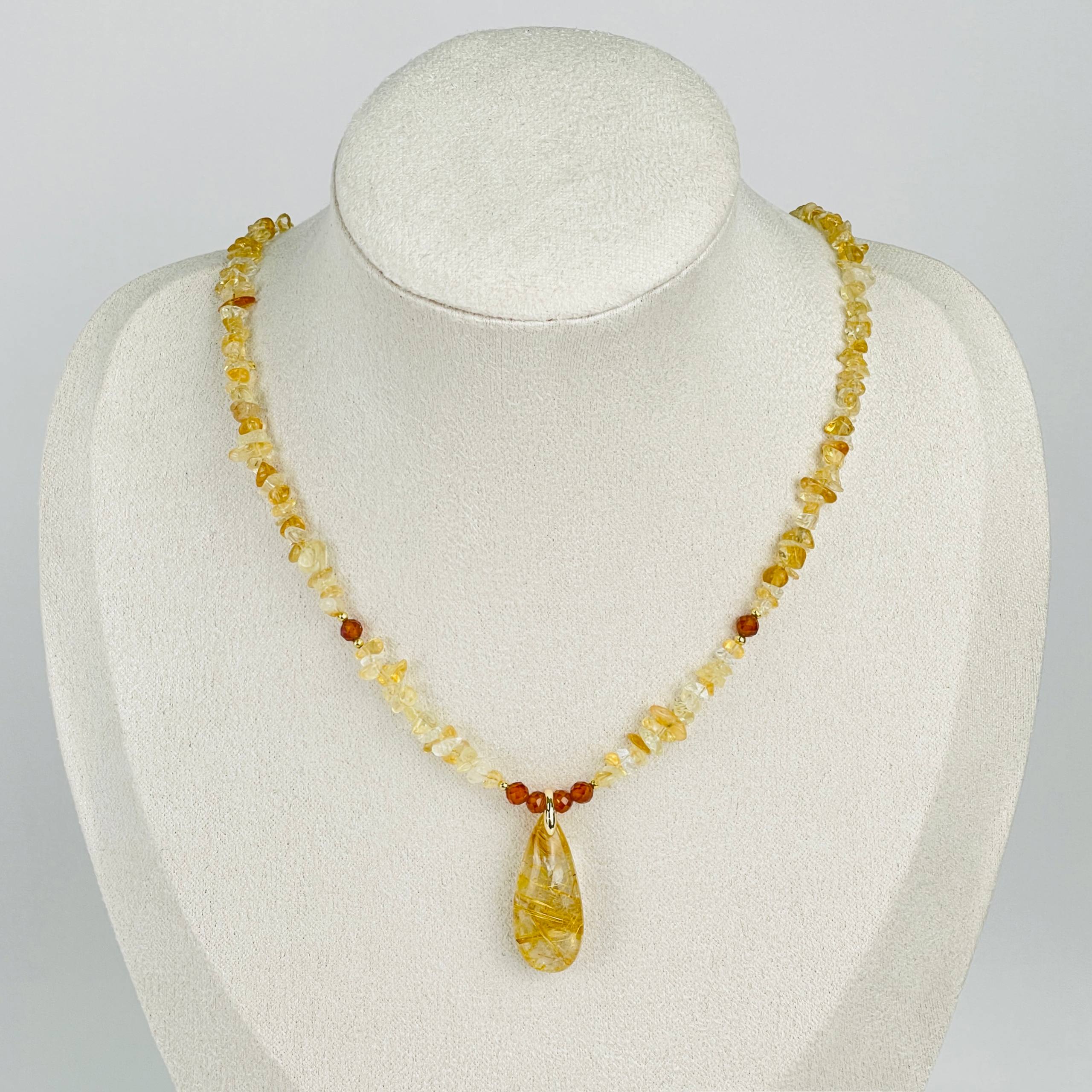 Радуга Самоцветов Колье из Цитрина и Граната "Спессартин" с кулоном из Рутилового кварца