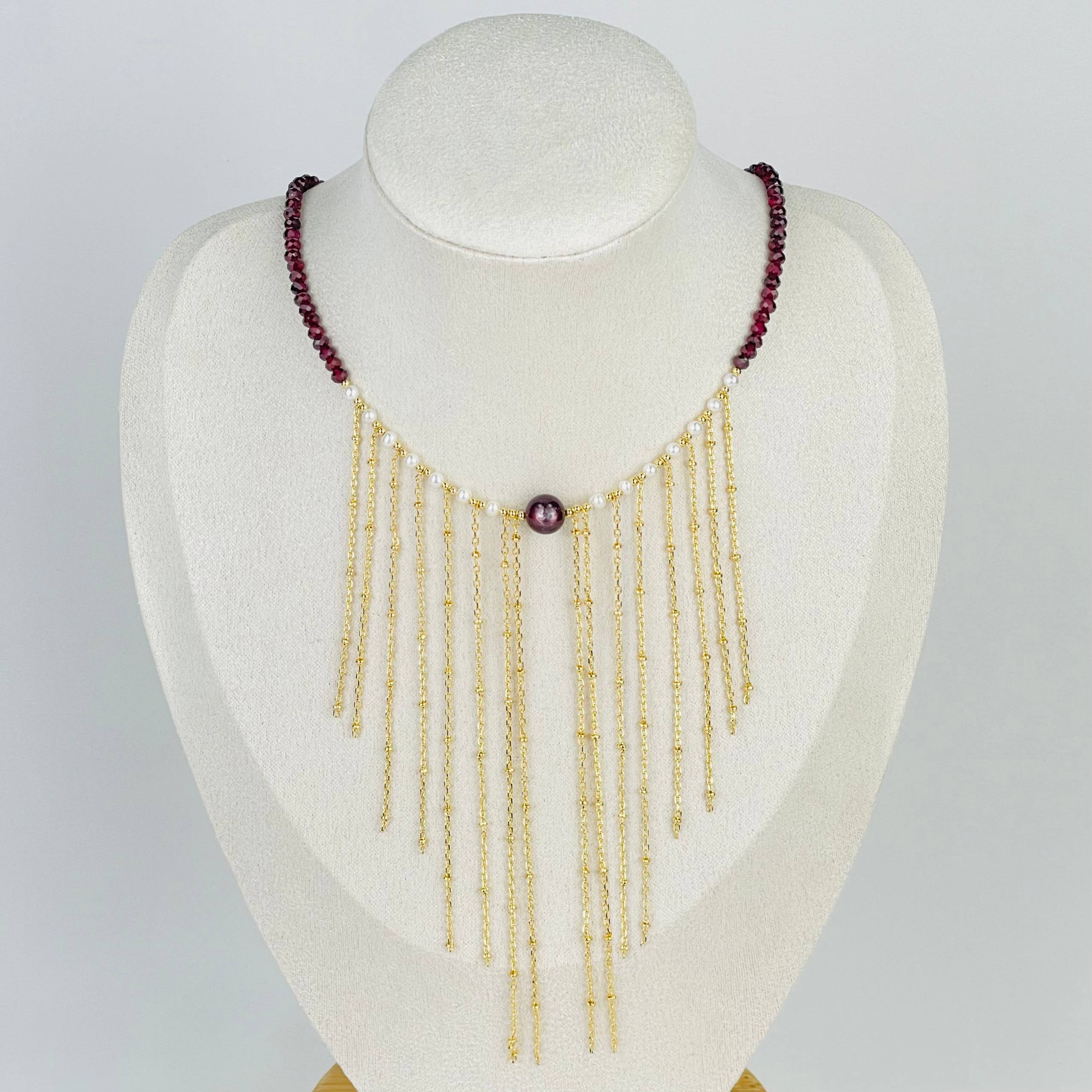 Радуга Самоцветов Колье из Граната, Жемчуга и Лепидолита