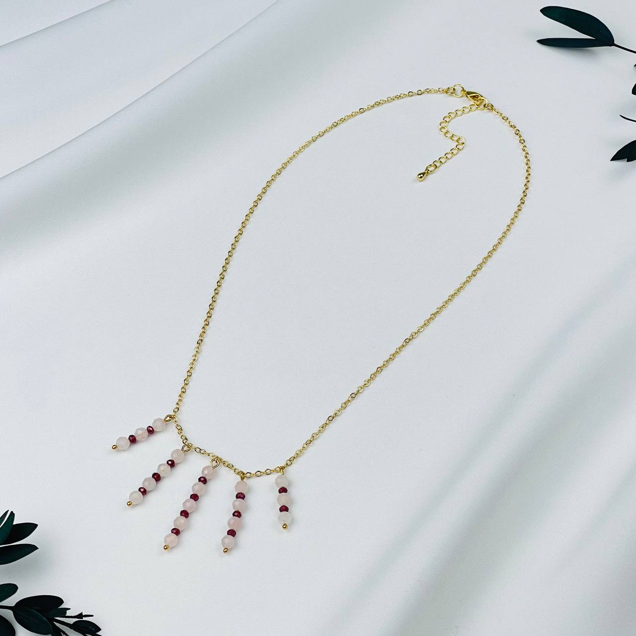 Радуга Самоцветов Колье на цепочке из Розового кварца и Граната