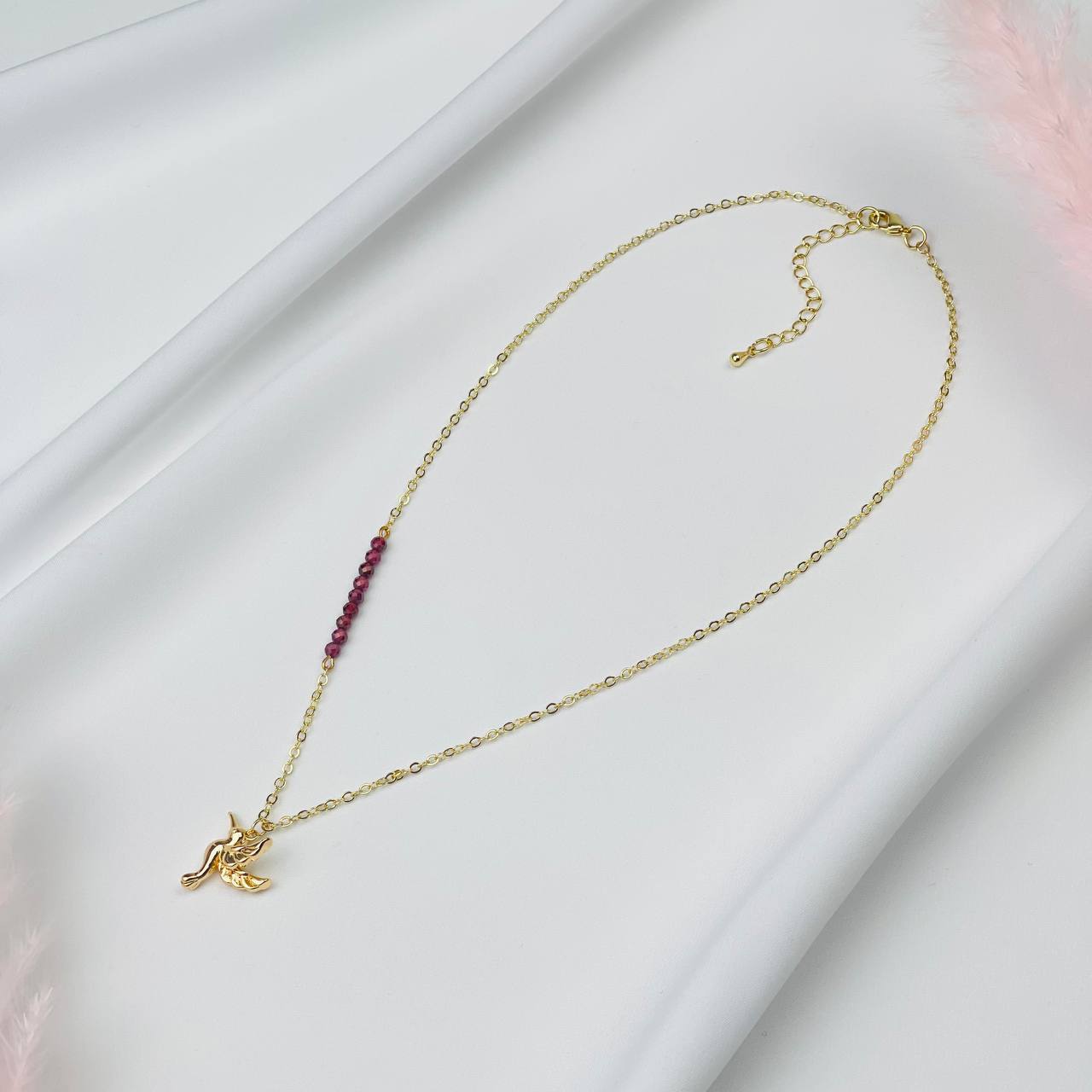 Радуга Самоцветов Колье на цепочке с камнем Гранат и подвеской "Колибри"