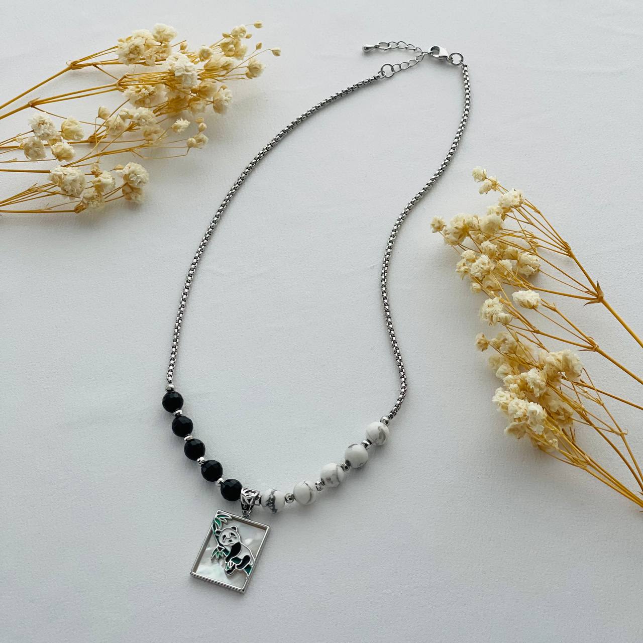 Радуга Самоцветов Колье на цепочке с подвеской из Говлита и черного Агата