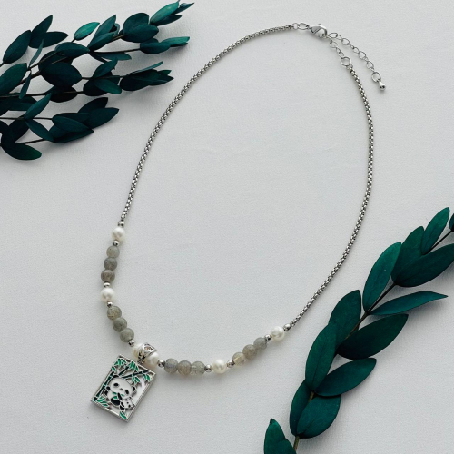 Радуга Самоцветов Колье на цепочке с подвеской из Перламутра и черного Агата