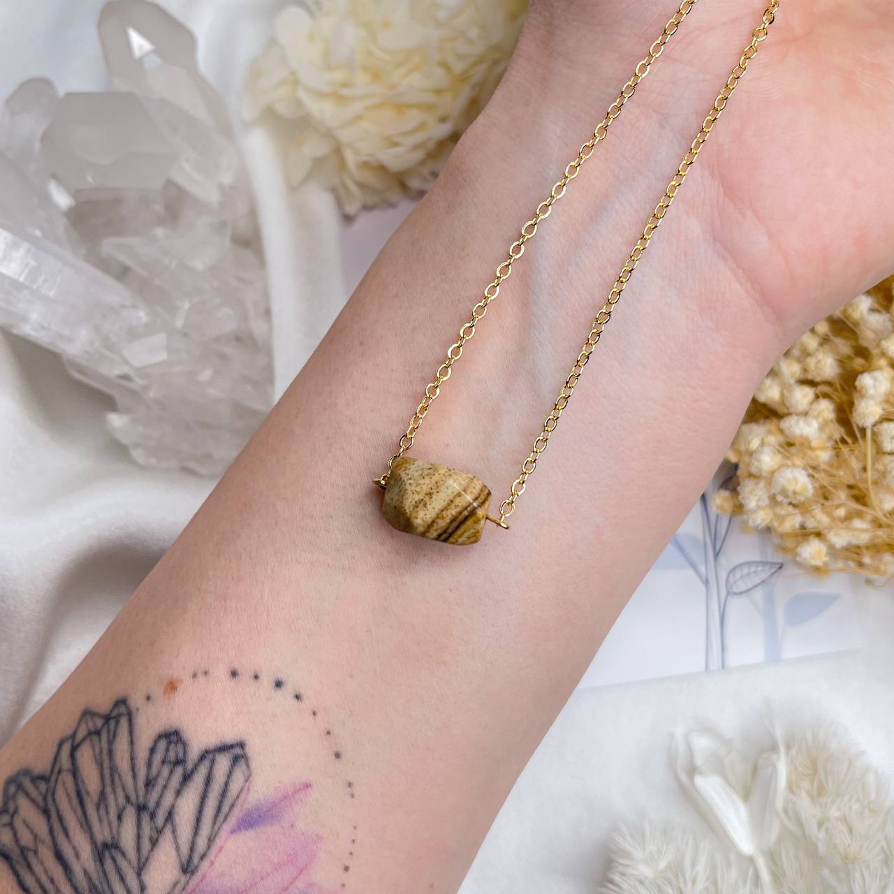 Радуга Самоцветов Кулон на цепочке с Яшмой песочной