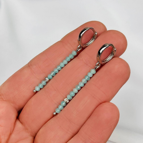 Радуга Самоцветов Серьги длинные из Амазонита и Горного Хрусталя