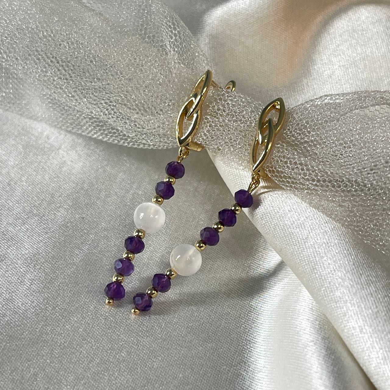 Радуга Самоцветов Серьги длинные из Аметиста и Селенита