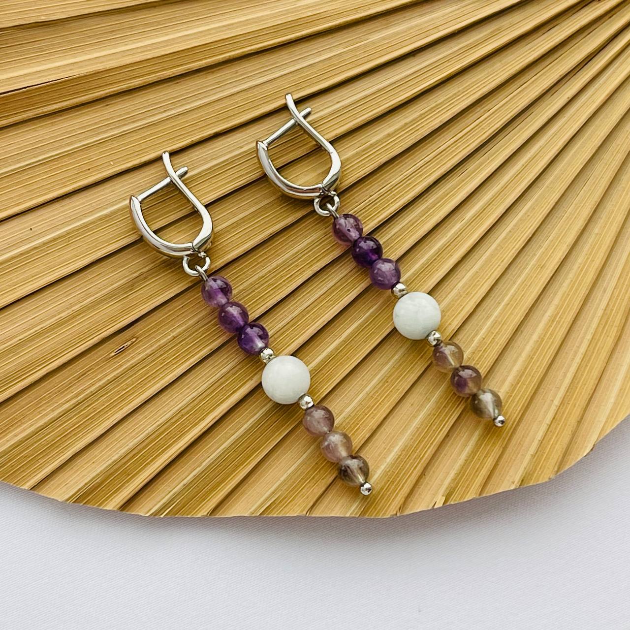 Радуга Самоцветов Серьги длинные из Аметиста с Аквамарином