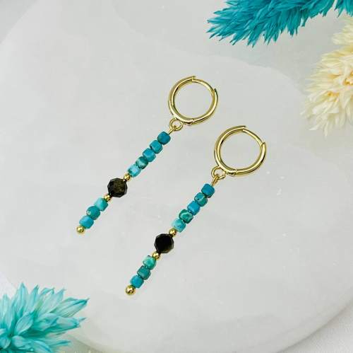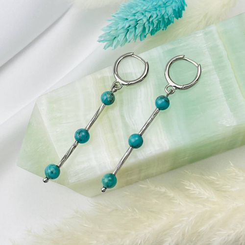 Радуга Самоцветов Серьги длинные из Бирюзы и золотистого Обсидиана