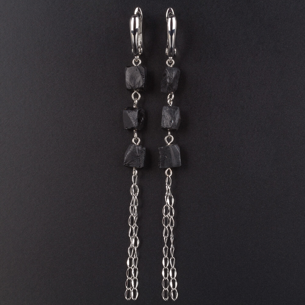 Радуга Самоцветов Серьги длинные из черного Турмалина (Шерл)