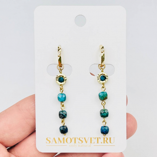 Радуга Самоцветов Серьги длинные из Хризопраза и Родонита