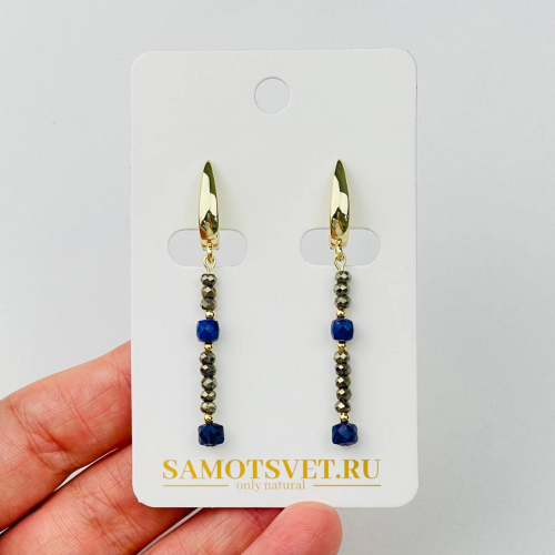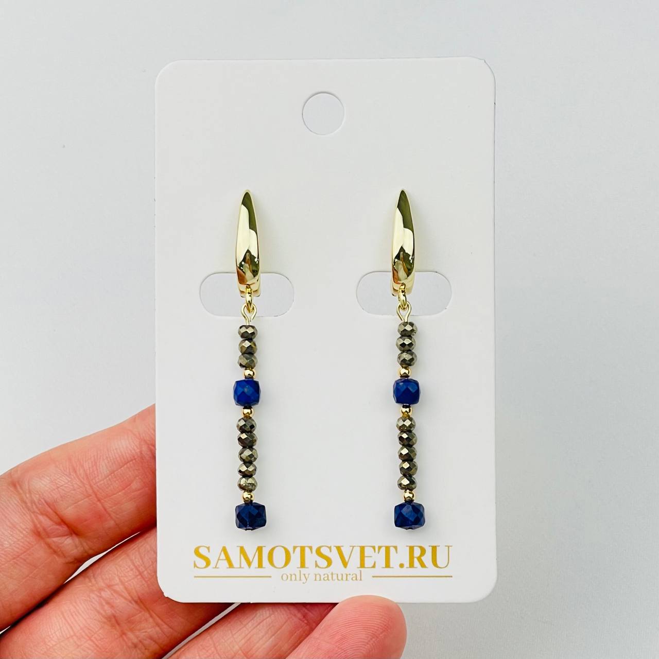 Радуга Самоцветов Серьги длинные из Пирита и Лазурита